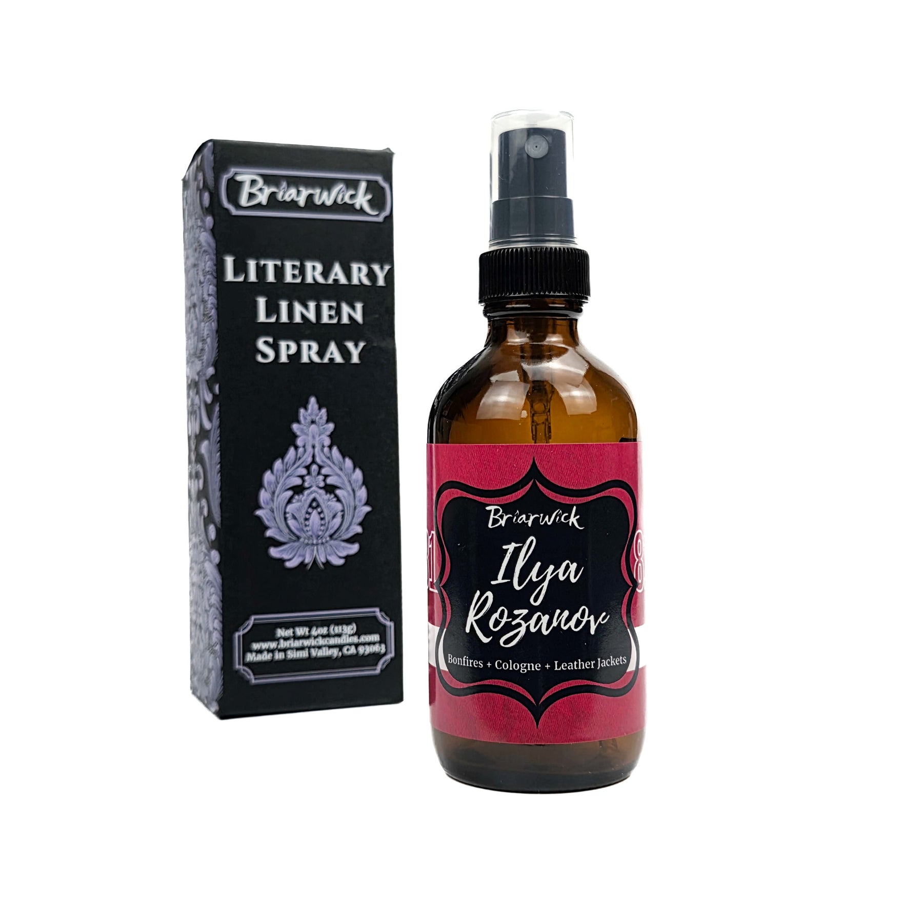 These 4oz (113g) linen sprays come in a black opaque or amber glass bottle.